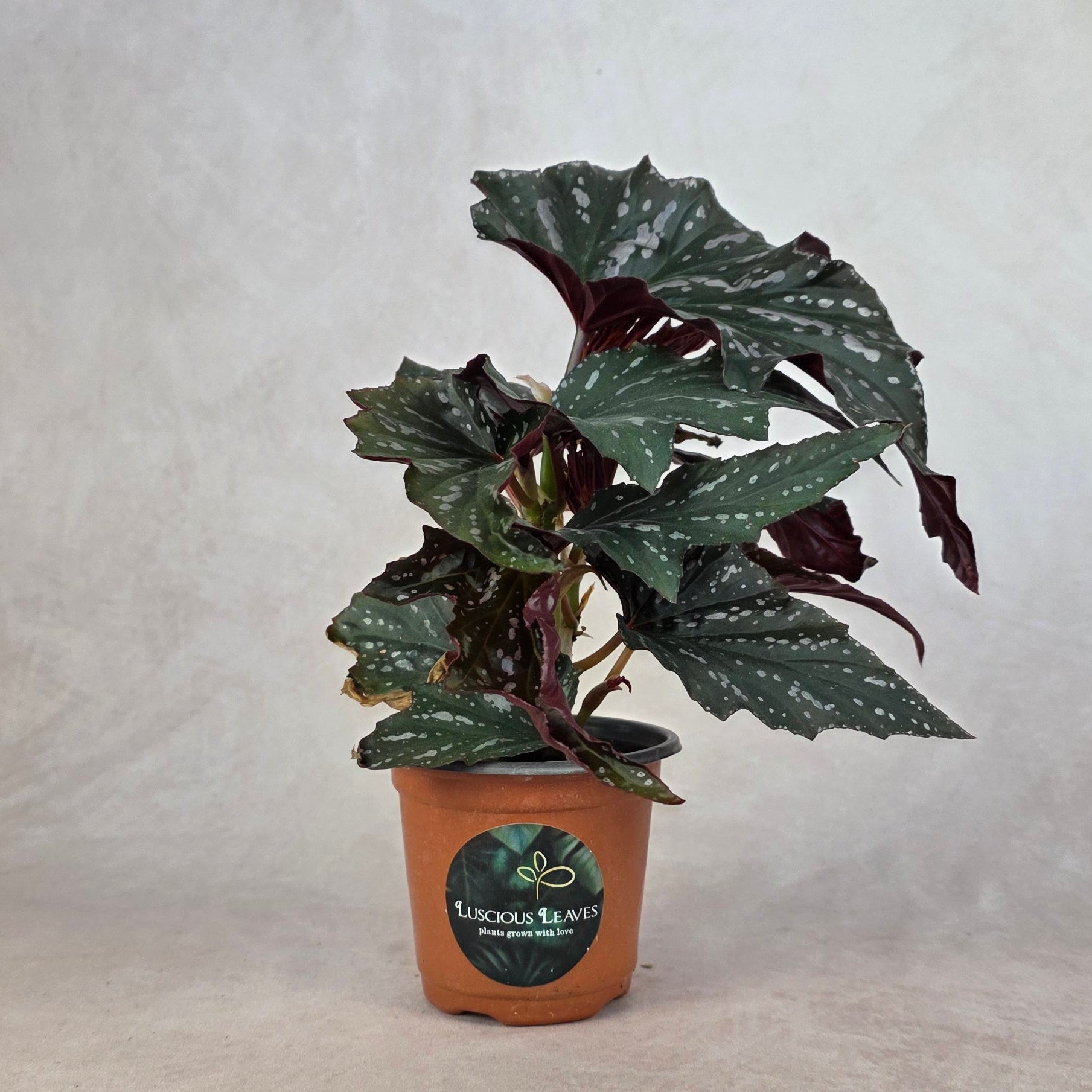Begonia ‘Sophie Cecile’ is known for its beautifully detailed, silver-green leaves with deep magenta veining and edges brushed in soft rose tones. The leaf surface has a subtle iridescent sheen — catching light and enhancing every swirl of color. Its upright, bushy habit makes it a stunning display plant for shelves, plant stands, or bright windowsills.